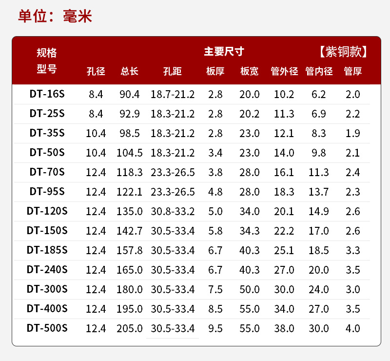 创联 紫铜线耳DT-150 /16 /95线缆连接电力金具接线端子 铜鼻子系列 是否支持加工定制 | 是 | ||