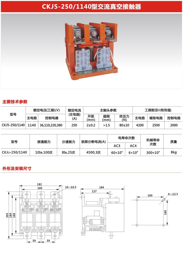 CKJ5-250/1140V低压真空接触器供应CKJ5-250 是否支持加工定制 | 是 | ||