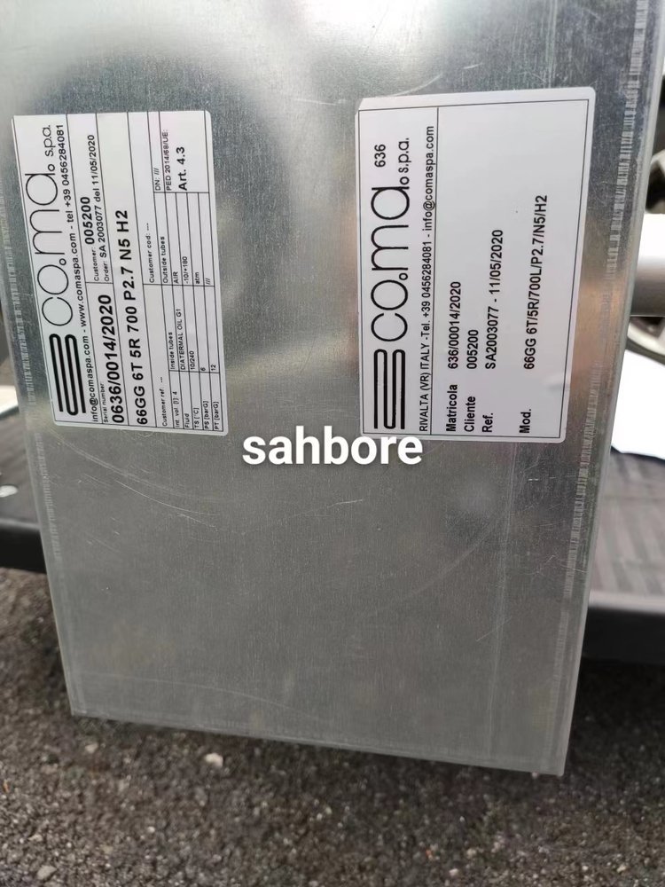 Co.ma.S.p.a.66GG6T5R700P2.7N5H2 管式热交换器 用途:管道中的导热油,对印刷凹印机印刷屏进行热交换