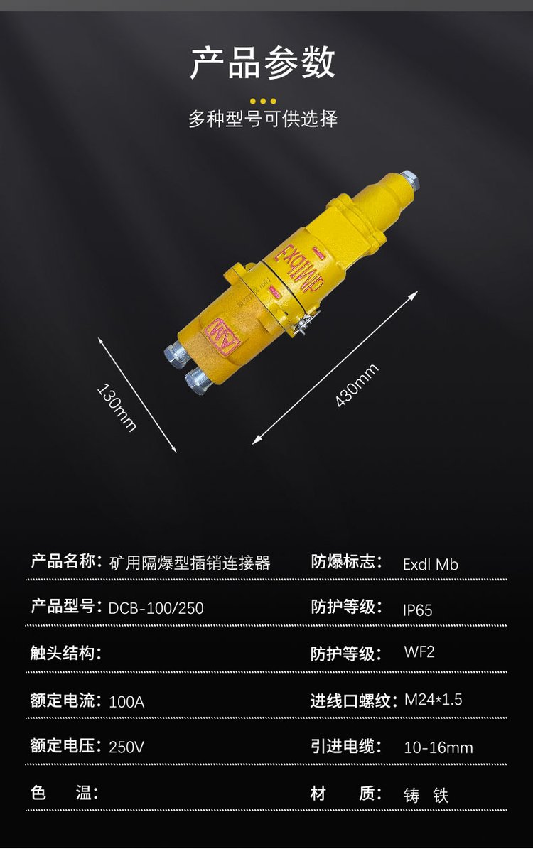 蓄电池电机车接通和断开配件DCB-100/250矿用隔爆型插销连接器 品牌 | 灵肯防爆 | ||