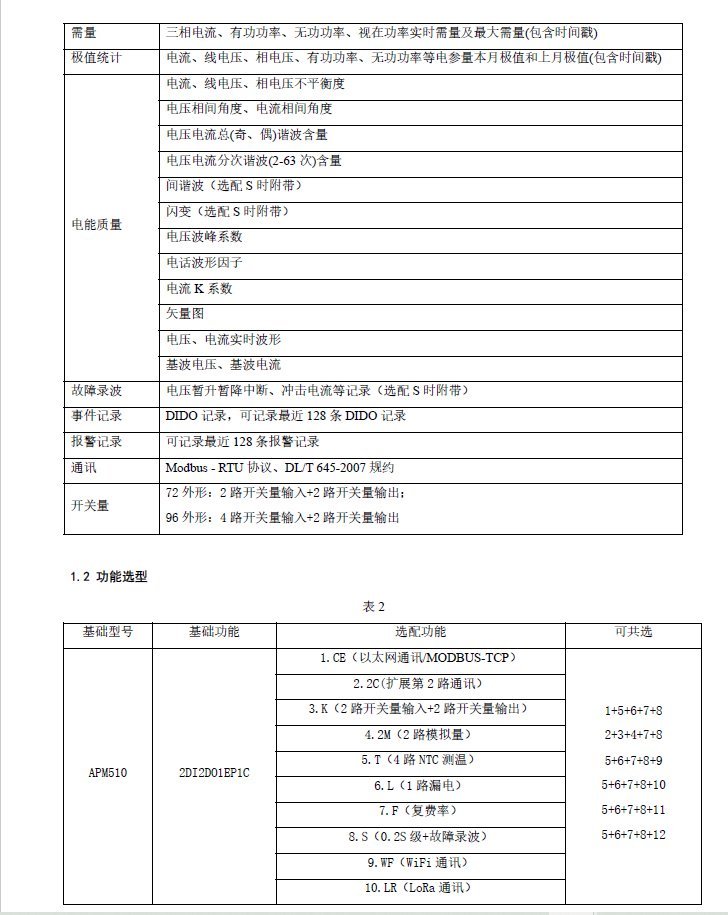 主要功能 | 电能测量 | ||