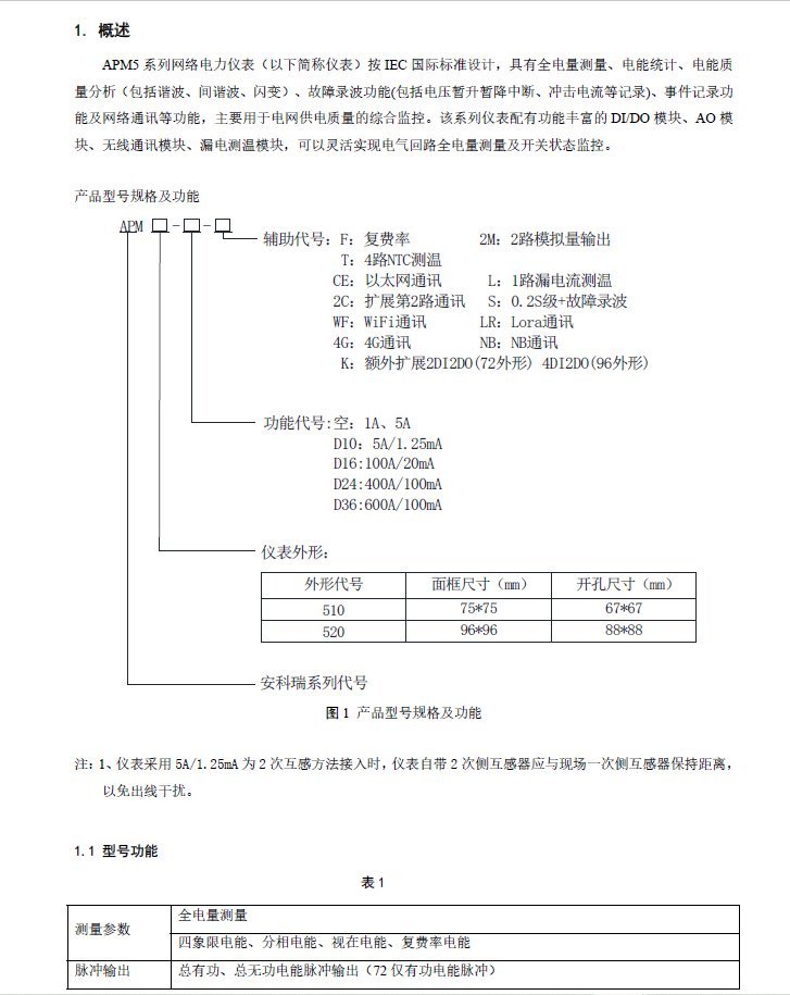 安科瑞APM510/S高精度全电量网络电能表电网供电质量综合监 控表 品牌 | 安科瑞 | ||