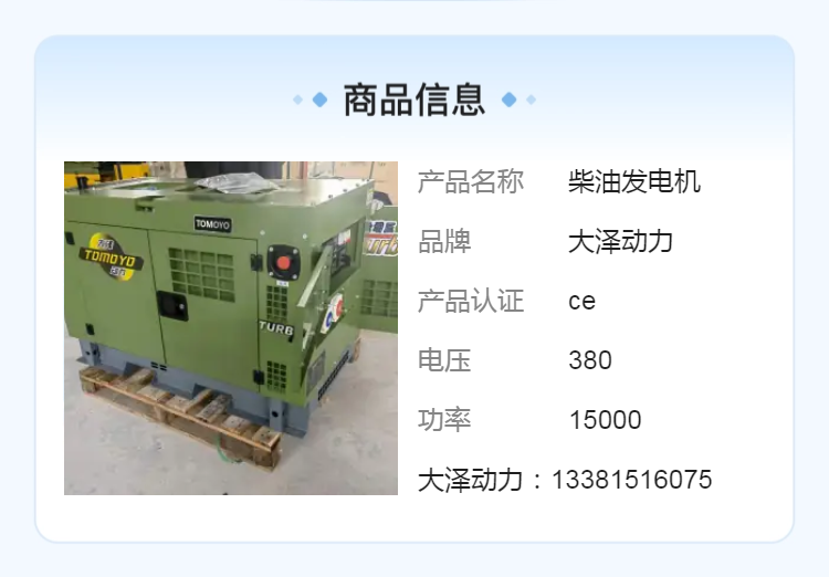 备用功率 | 15KW | ||