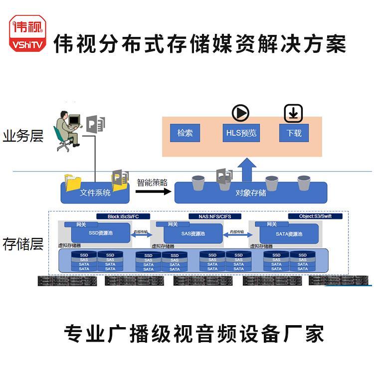 ? ? ?伟视分布式媒体存储管理系统是为数字电视、移动电视、多媒体内容发布等业务需求而开发的内容管理平台。此管理平台专门针对视音频媒体文件的收集、存储、发布等环节而设计,是各级电视台、节目制作机构、博物馆、视音频教学机构多媒体资料管理的核心组成部分。