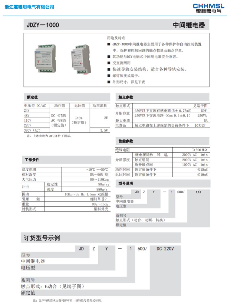 JDZY-1100/DC220V中间继电器主要用于各种保护和自动控制 品牌 | 霍穆思 | ||