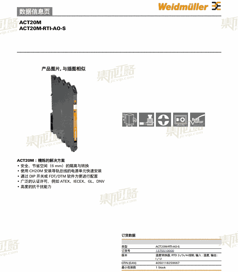集成工略 魏德米勒原装正品信号隔离器ACT20M-RTI-AO-S