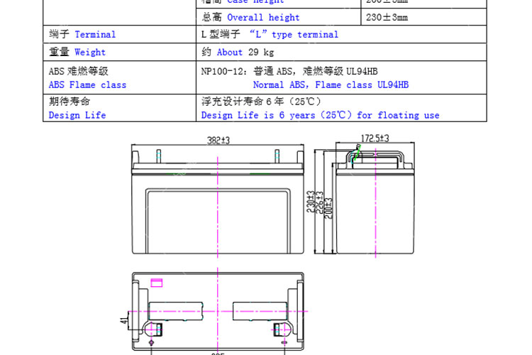 • 种类:铅酸蓄电池