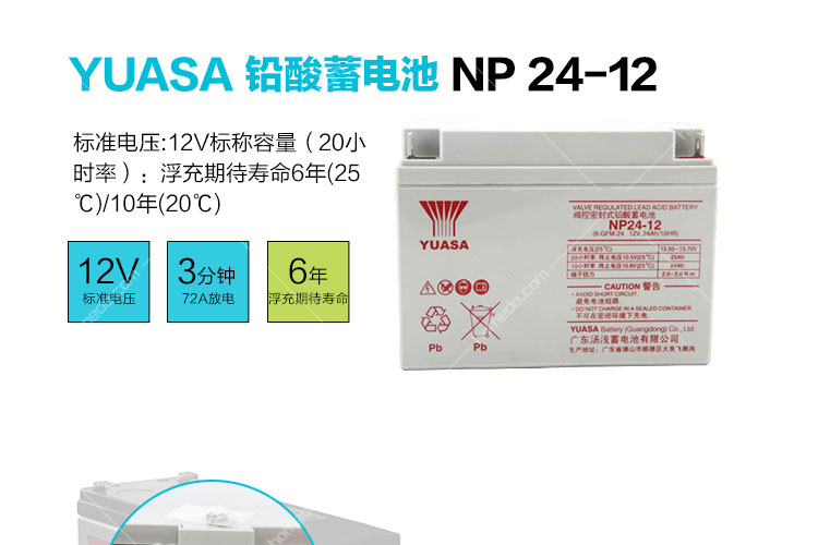汤浅(YUASA) 铅酸蓄电池 全密封结构 12V24AH NP24-12