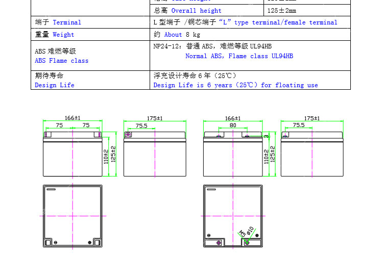 • 容量规格:12V24AH