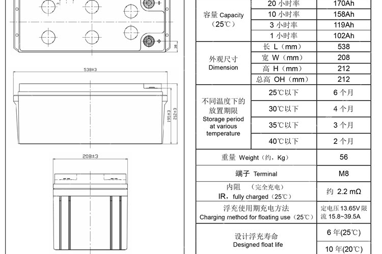 • 容量规格:12V170AH
