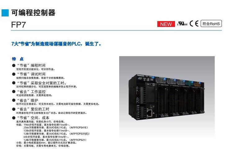 松下PLC一级代理 FP7系列 CPU单元 AFP7CPS3RE AFP7CPS4RE