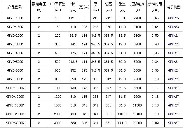 1.容量范围(C10):80Ah—3000Ah(25℃);2.电压等级:2V、6V、12V;3.设计寿命长:2V系列电池设计寿命达15年,6V、12V为10年;(25℃);4.自放电小:≤1%/月(25℃);5.密封反应效率高:≥99%;6.结构紧凑,比能量高;7.工作温度范围宽:-15~45℃。