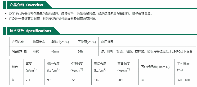 江西欣盛陶瓷修补剂JXS1925 6kg套