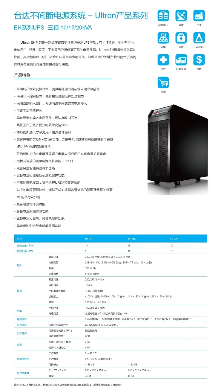 台达ups电源15KVA 台达EH15K主机
