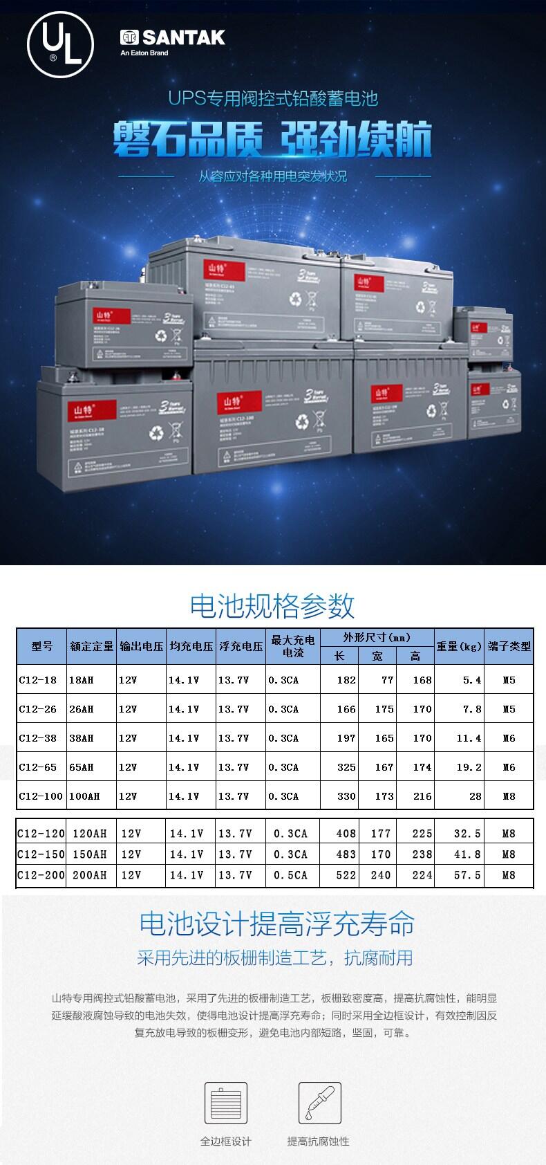 SANTAK山特城堡C12V系列蓄电池18Ah-120Ah UPS电源专用蓄电池