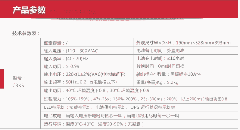 山特UPS不间断电源 C3KS 3KVA 2.4KW 在线式 自动稳压 C3KS