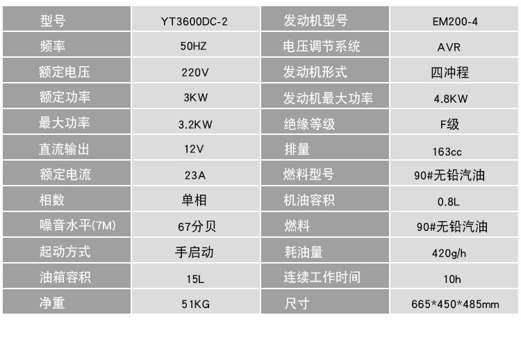 伊藤3KW汽油发电机YT3600DC-2: