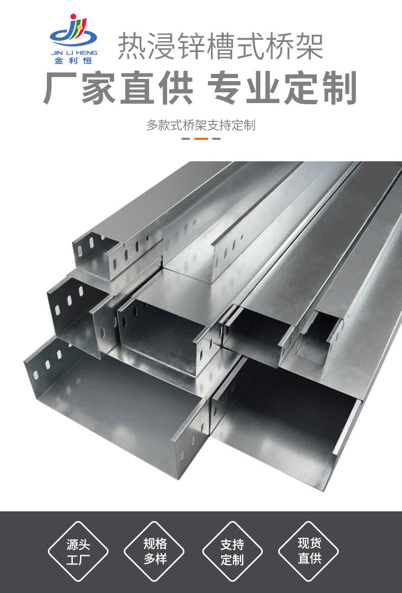 山东金恒电气电缆桥架厂家,有着15年的生产经验,自建工厂10万平,是一家生产制造型厂家。主营:槽式电缆桥架、托盘式电缆桥架、梯式电缆桥架热浸锌电缆桥架、不锈钢电缆桥架、玻璃钢电缆桥架、铝合金电缆桥架喷塑电缆桥架、母线槽、高低压开关柜等产品,产品规格多样、型号齐全、支持定制,承接大型工程项目、电力安装项目、在建地下车库项目、在建商场项目等。我们是源头工厂,质量保证,量大从优!