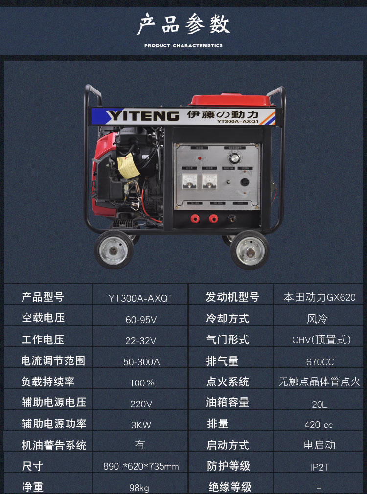 伊藤动力低油耗可移动式300A汽油电焊机YT300A便捷
