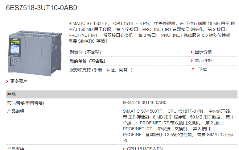 • 规格:6ES75183UT100AB0
