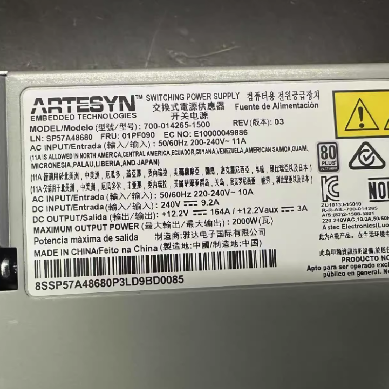 ARTESYN 700-014265-1500 01PF090 2000W SR860 SR950 服务器电源模块批发及专业电源维修