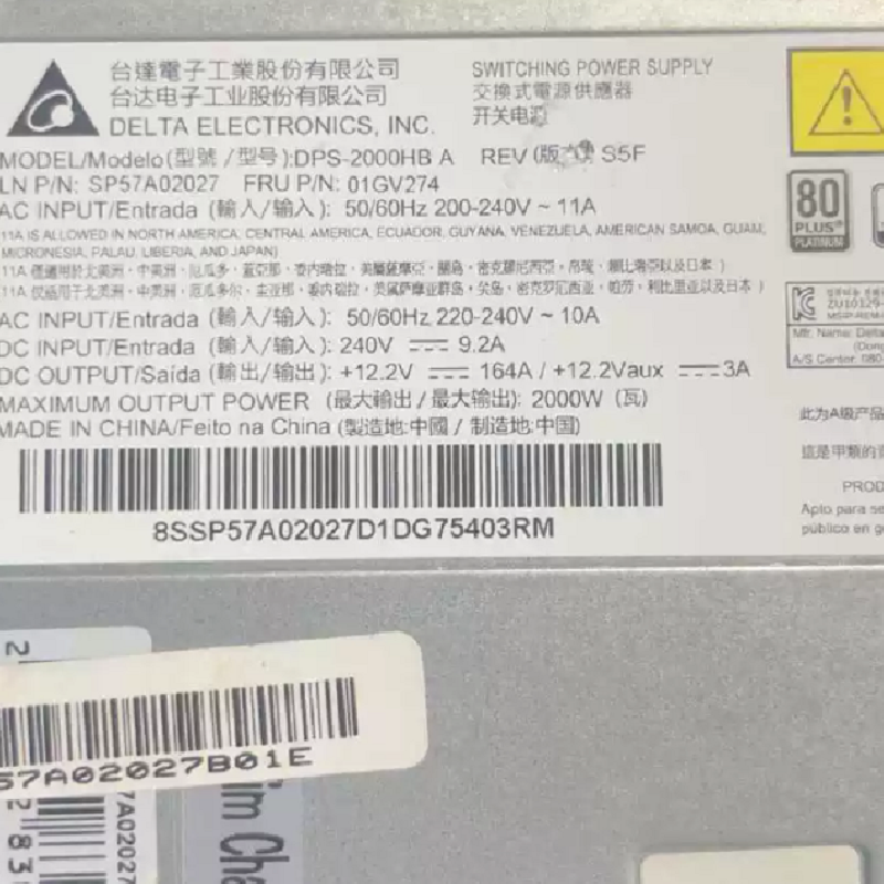 Delta DPS-2000HB A 01PF095 SP57A48736 2000W SR650 SR850 SR860 SR950 SR550 SD530 Lenovo联想服务器冗余电源模块、服务器热插拔电源模块及专业电源维修