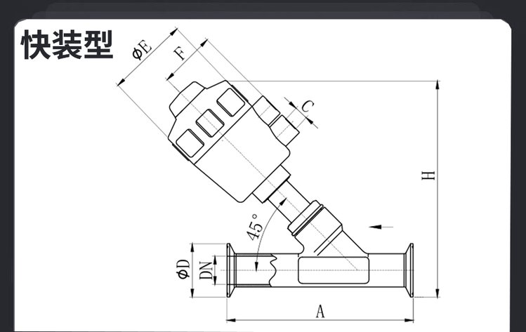 连接方式 | 快装式气动角座阀安装 | ||