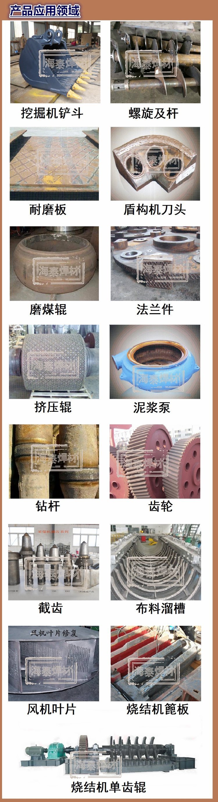 适用范围 | 适用堆焊耐岩石强烈磨损的机械零 | ||
