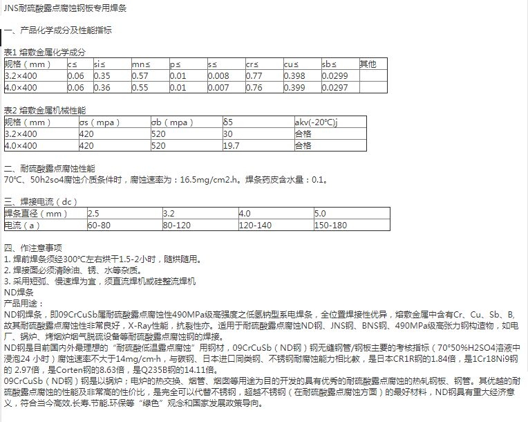 JNS耐liu酸露点腐蚀钢板专用焊条