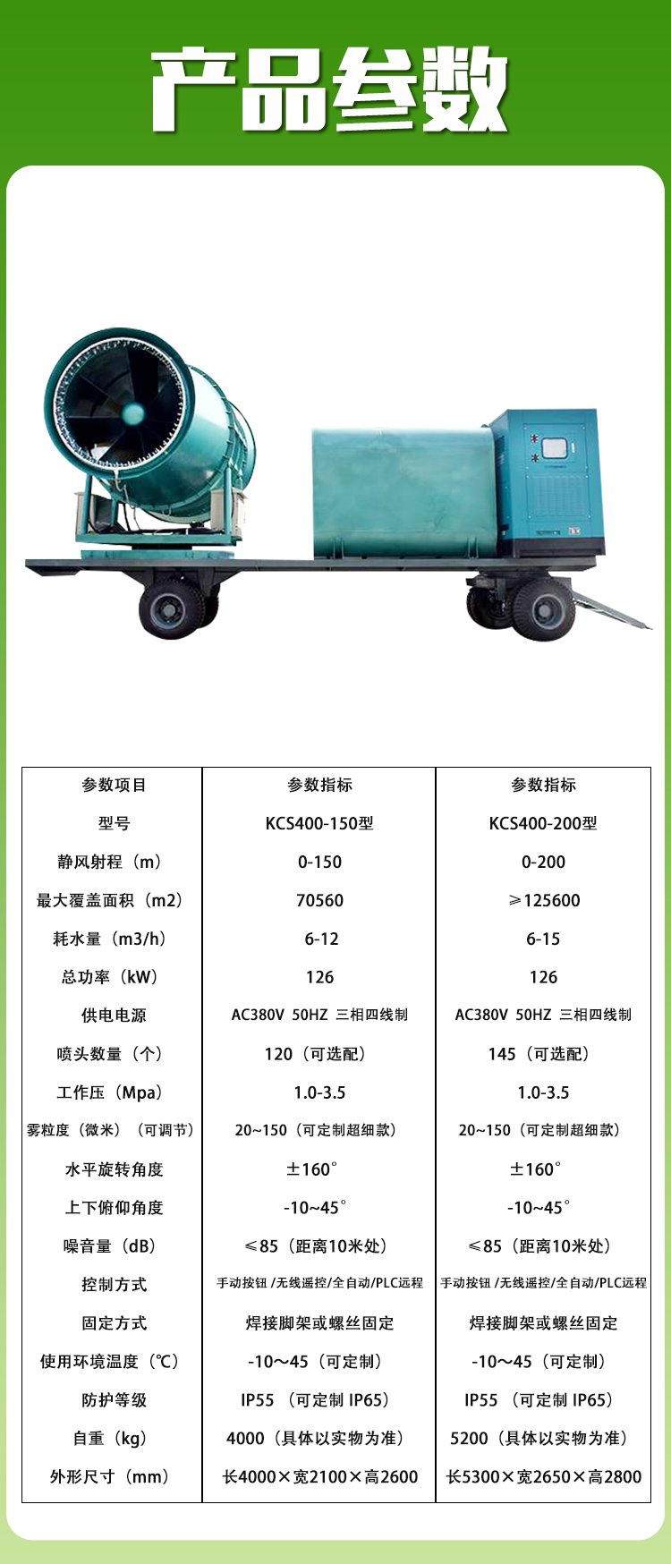 最大覆盖面积(m2) | 2400㎡-125600㎡ | ||