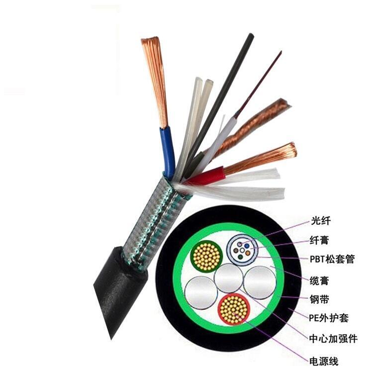 产品描述:供应光电混合缆生产厂家 rvv2*1.5加6芯束管直埋光缆