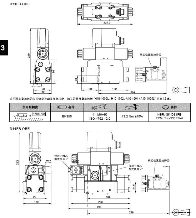 分与外接电子控制器操控的D*1FB 电磁比例方向阀相同,而阀