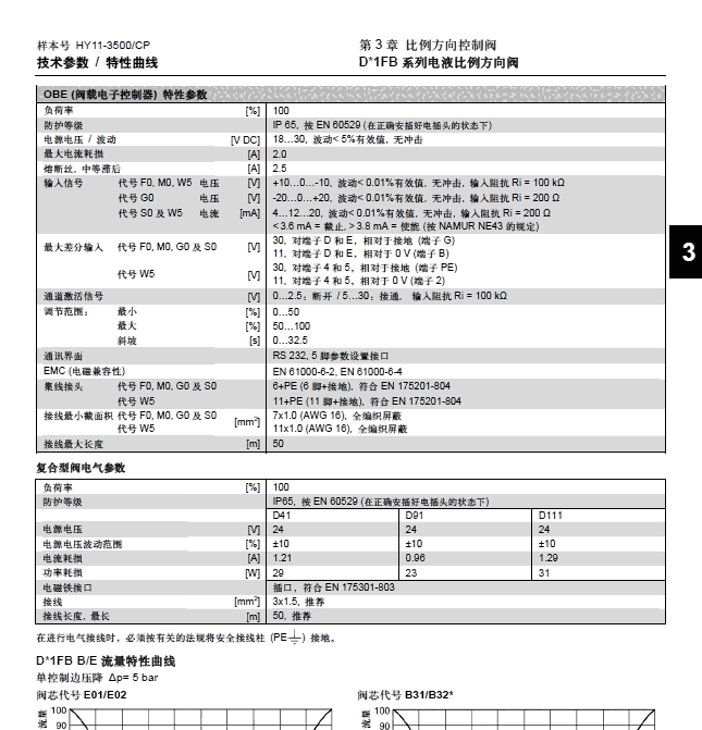 带阀载电子控制器的 D*1FB OBE 型电磁比例方向阀的液压部