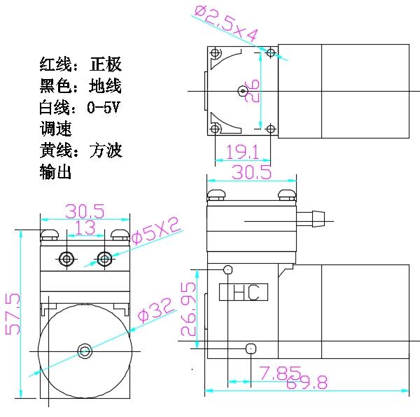 1.红线:正极 2.黑线:地线 3.白线:0-5V 4.黄线:方波输出 |