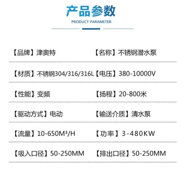 200QJH充水式不锈钢潜水泵产品参数: