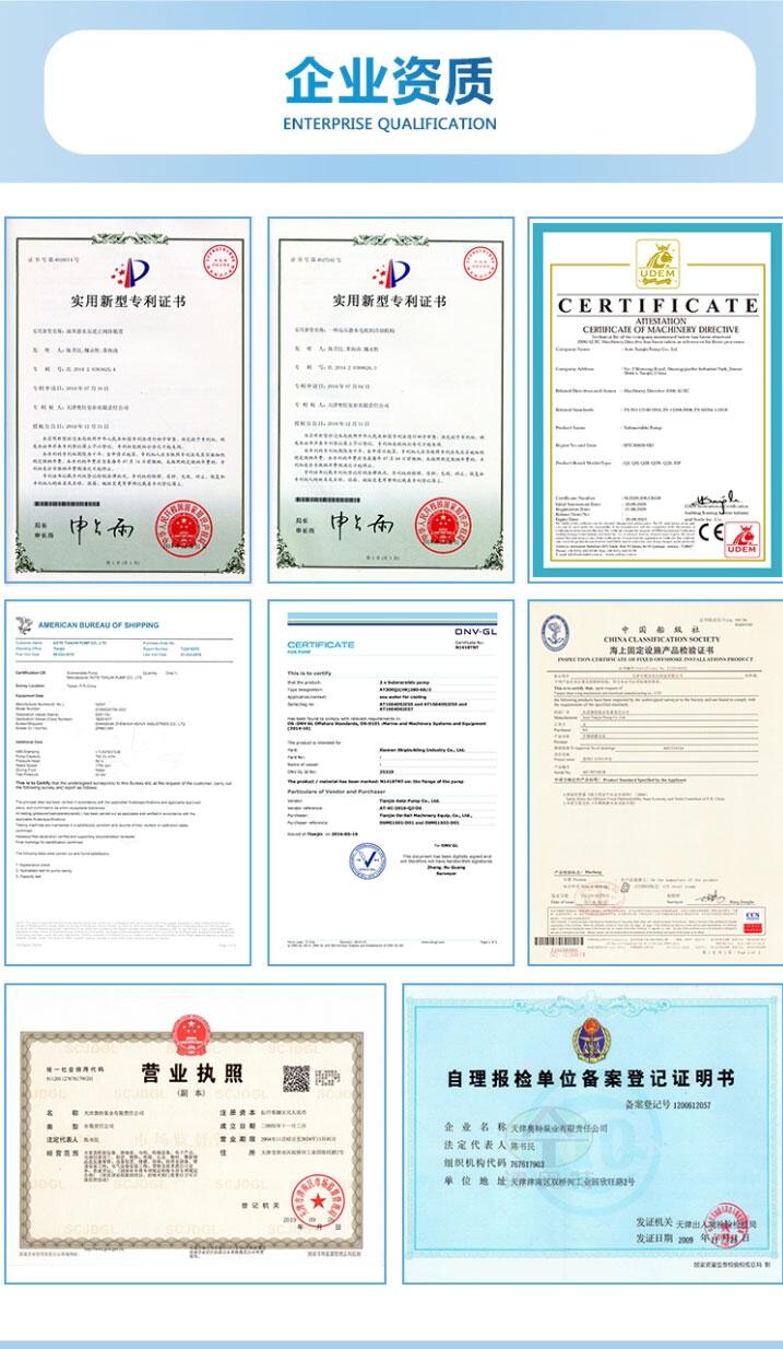 200QJH充水式不锈钢潜水泵企业资质: