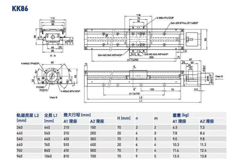 KK线性模组精密直线滑台重载滚珠丝杆KK60C/P级KK86