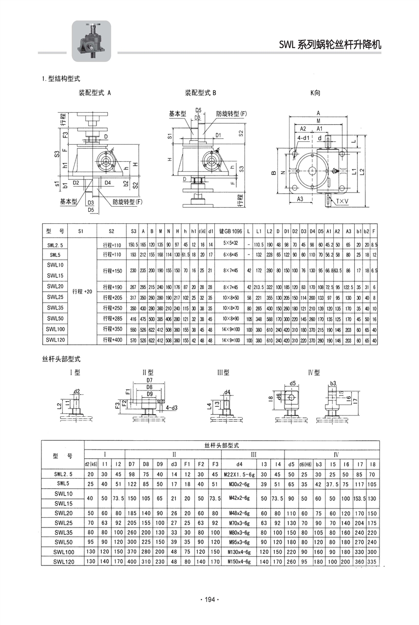 注:在受到较大振动,冲击载荷时,可能会使自锁功能失效,此时请外加制动装置。
