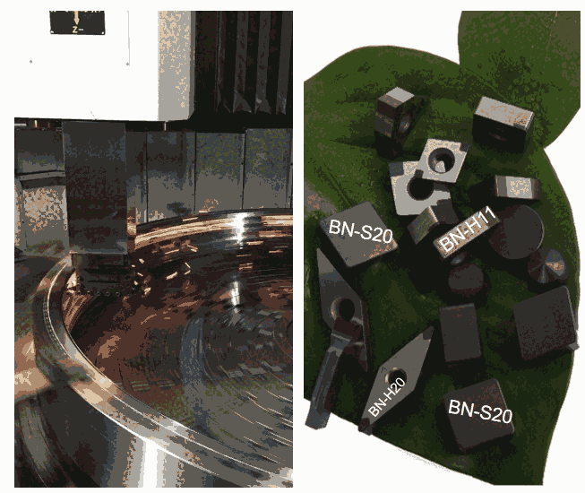 如果想进一步提高效率和刀具寿命,热处理后硬度50度到60度淬火钢硬车削还可选择涂层CBN刀具:是在CBN刀具上做CBN涂层,比未涂层的CBN刀片耐磨性能更好,寿命也更高,一些大批量加工淬火钢件的企业,为了进一步提高生产节拍和降低刀具综合成本,会选择涂层PCBN刀片。