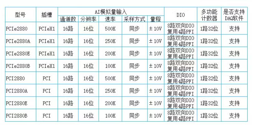 PCIe2880E多功能同步采集卡,16路单端模拟量输入通道,16bit ADC分辨率,200kS/s最大采样速率;8路数字I/O,4路可编程I/O及1通道多功能计数器。与Labview无缝连接,提供图形化API函数。