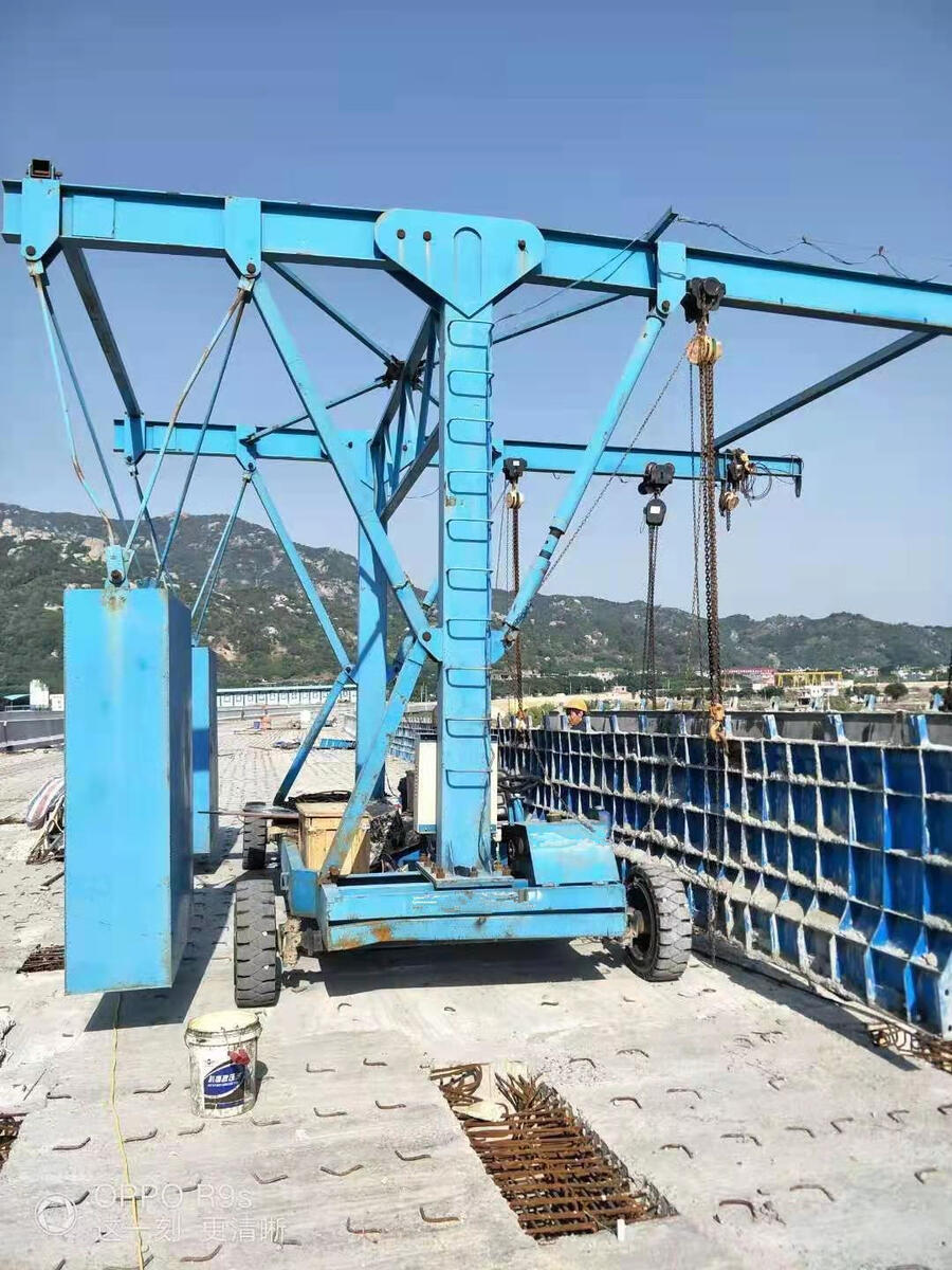 备由国标工字钢漆,环保耐腐蚀;钢架无包装,电气等精密配件有纸箱、木箱包装,运输由专车发出;本设备主要用于高架桥两的防撞墙模板的安装、拆除,让安装和拆除省力、省时、省心、另外工人在安装拆除的时候更加的安全;本设备经过我厂严格把控,