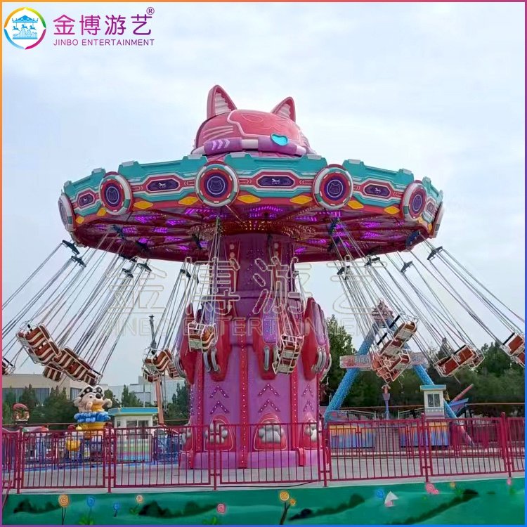 新款摇头飞椅,金碧辉煌气势磅礴的飞椅已常见于游乐园并以自身特有气质展示了一道靓丽风采线。为了迎接更宽广的市场需求,金博游艺推出了一款既逗趣又时尚的36座摇头飞椅,这款飞椅特突出的是改变了以往单独座椅变成了双排座,这使乘客在游玩时有陪伴,解除了想玩又害怕的担忧,消除了家长担心小孩独自乘坐的顾虑。细腻线条点缀,柔和色彩渗合,可爱大气的外观,都是杜绝同质化的体现。