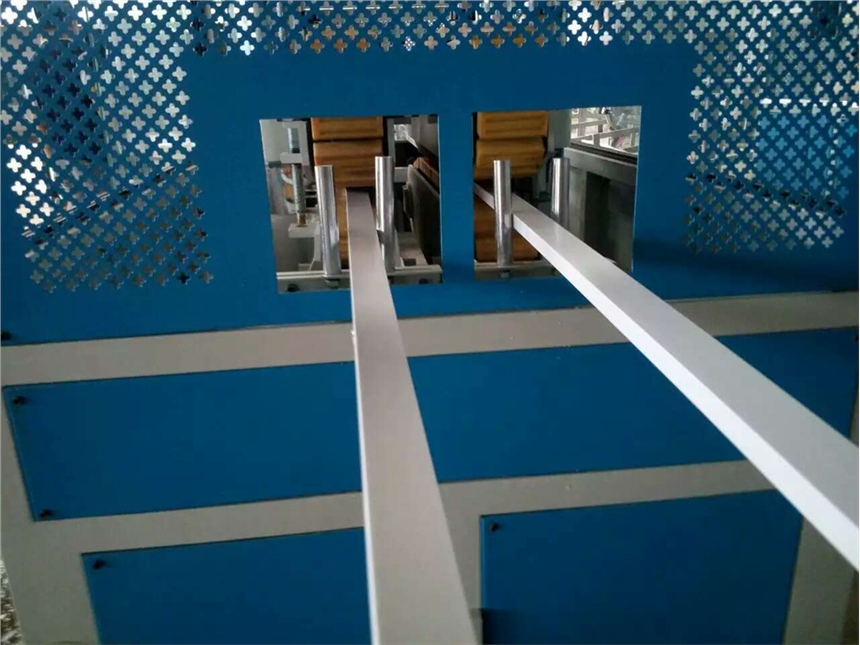 三、设备主要组成部分:PVC角线条材生产线主要由以下组成:51、65锥形双螺杆塑料挤出机、一出二模具、冷却真空定型台、牵引机、冲床、切割机、翻转架、高速混合机、塑料破碎机等。