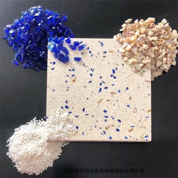 水泥基大板人造石新型建材设备、无机水磨石板材设备,通体砖设备,分体砖设备,PC砖设备,湿法制路沿石设备等,其中以全自动多工位多色彩砖机、直线型压砖机,码垛机、直线磨台、圆盘磨石机等系列产品为主。经过大量改进和技术攻关,成功研制出具备东辰“核心技术”的新型机械,经过用户多年使用并改进,该系列机械以其独特外型设计、人机界面操作、PLC控制、先进合理的结构布局是目前同行业高品质、高性价比的推荐产品。 本公司生产的水泥基人造石设备和无机水磨石板材设备可以加装高频振动装置和抽真空排水装置,提高板材的出石率,减少板材的气孔,增强板材的强度。主要机制水磨石板材的尺寸有:1600X1000, 1600x800mm, 1500x670mm,1200x1200mm, 1200X900mm, 1200x600,1000x1000mm, 1000X800mm, 800X800mm, 600x600mm,500*-500,300*300mm等大中小型设备