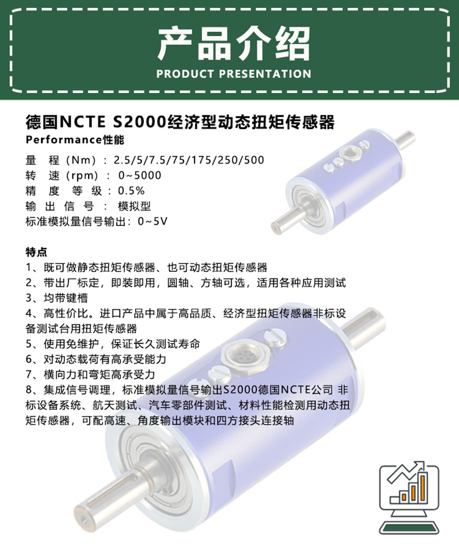德国NCTE动态扭力测试仪/进口转矩角度扭矩传感器 特性 | 高稳定性 | ||