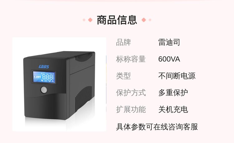 雷迪司H600不间断UPS电源600VA360W