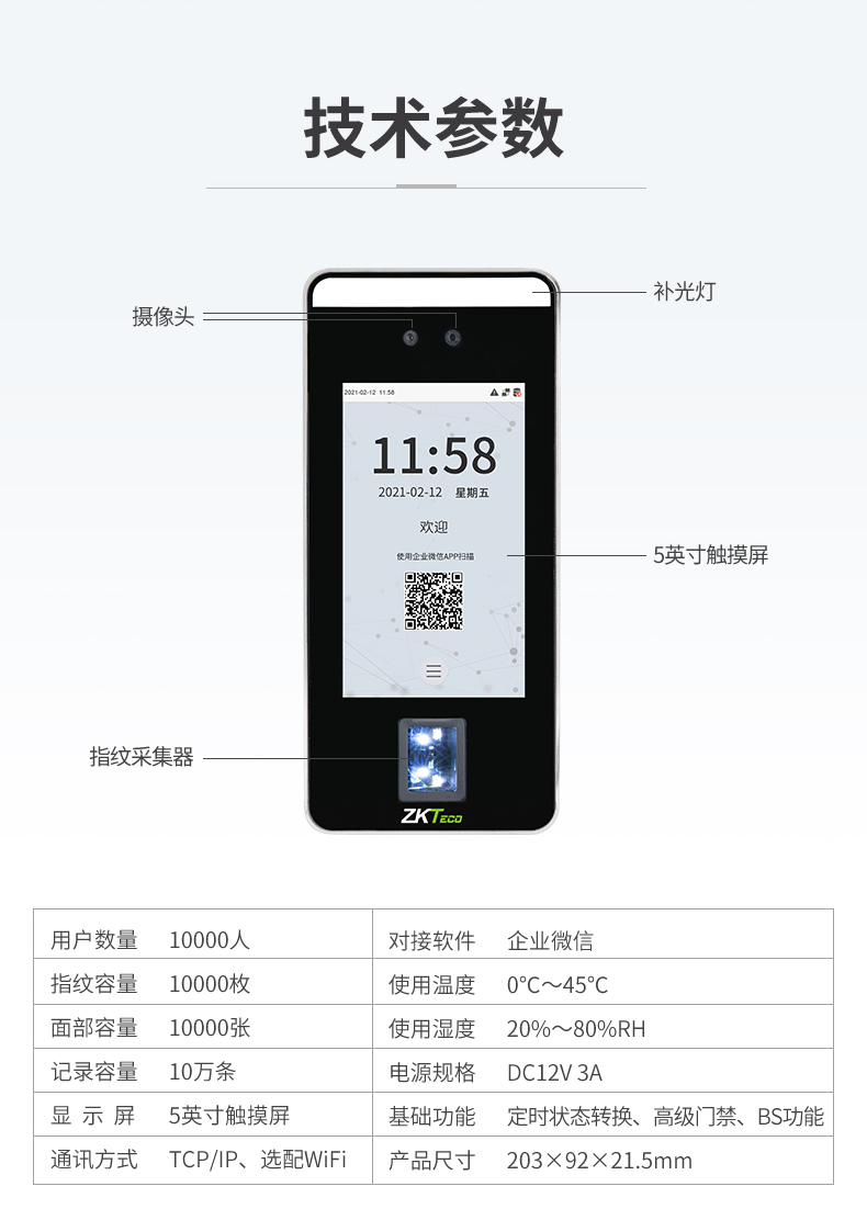 品牌 | ZKTeco中控ZK-F6 |