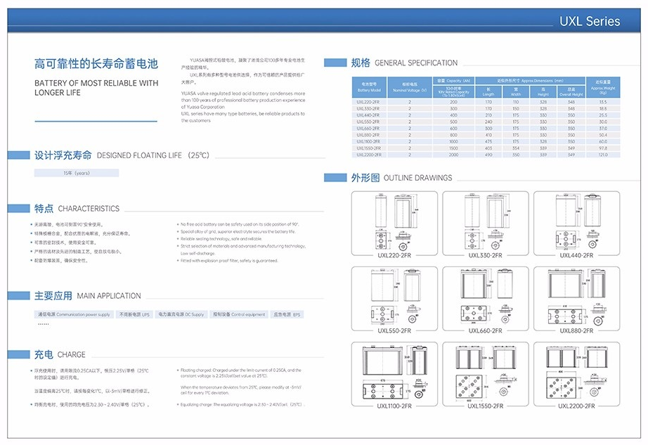 YUASA汤浅蓄电池 UXL550-2NFR 2V500AH直流屏 UPS/EPS电源配套 电压 | 2 | ||