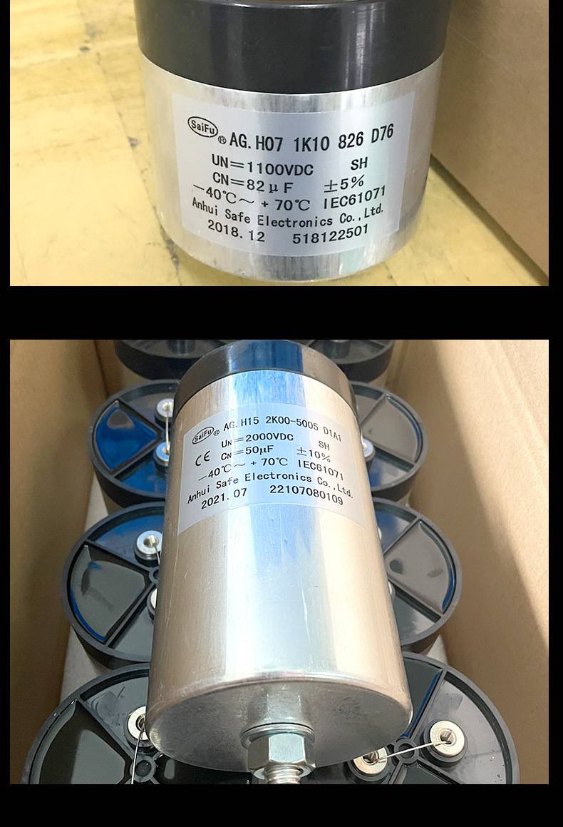 赛福? 热处理机直流储能支撑薄膜电容CDC 700VDC 880UF主要采用聚丙烯薄膜介质直流支撑电容器,其具有耐电压高、耐电流大、低阻抗、低电感、容量损耗小、漏电流小、温度性能好、充放电速度快、使用寿命长(约10万小时)、安全防爆稳定性好、无极性安装方便等优点。应用于电力电子行业。