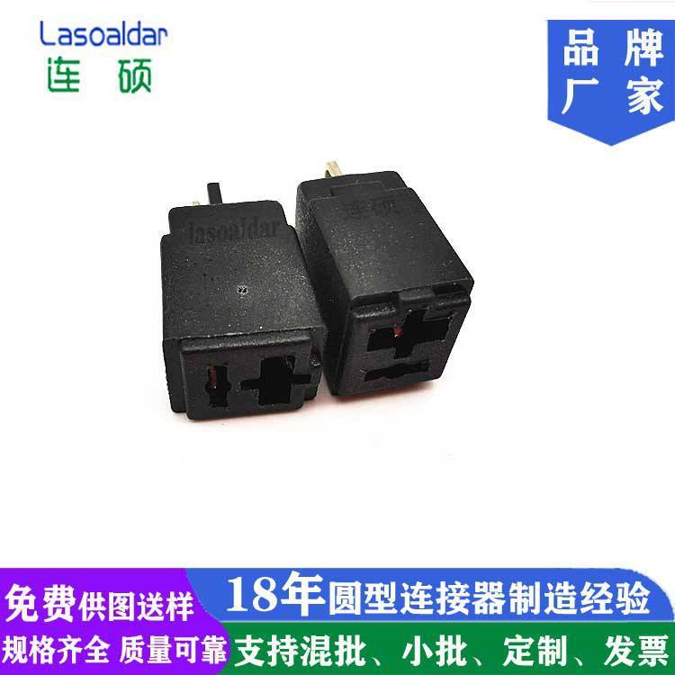 深圳厂家连硕达生产一圆一方两孔芯塑胶连接器01母插头焊线注塑成型式DIN2PIN电源座